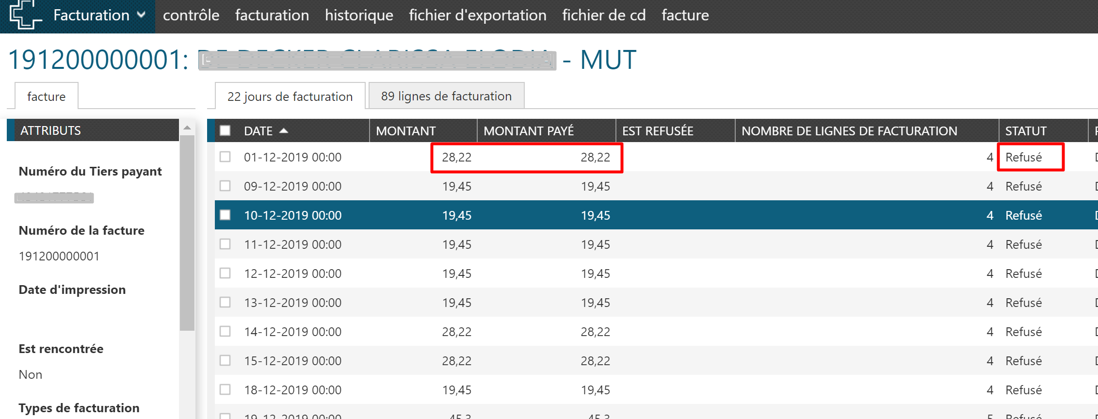 - ce jour a été soumis à nouveau alors qu'il a été payé au cours d'une période de facturation antérieure. L'information supplémentaire indiquera alors "facturé par" suivi par votre propre numéro de riziv ou numéro de groupe.
